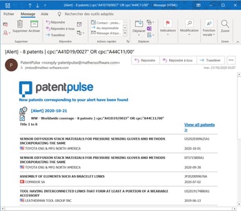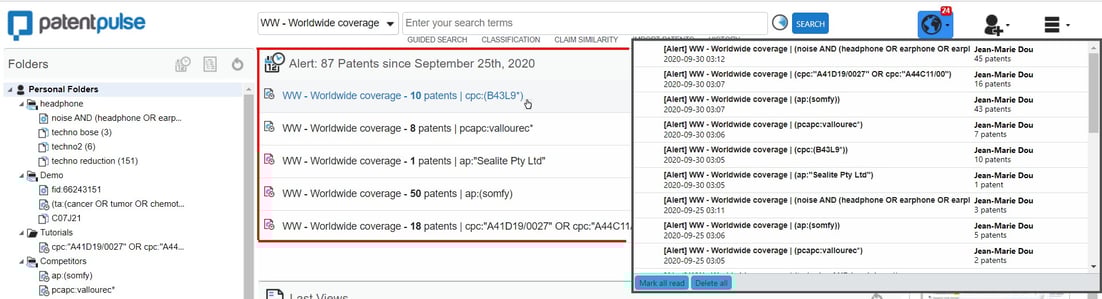 Access to the results of alerts on your Patent Pulse home page (when you log-in)