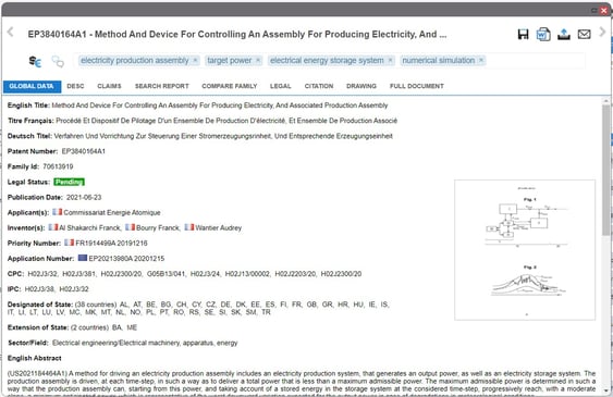 Click on a patent title and access to all the available information on that patent family.